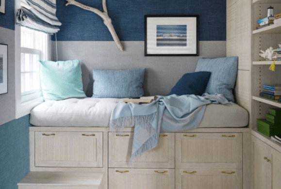 Coastal interior design is not only related to blue strips or tiny ships in a bottle. You can layer up several fabrics with different designs and materials. You can include cushions, wall hangings, rugs, baskets, and many such things in your present space to relax and lay back, giving all the coastal look. You can even incorporate a driftwood coffee table to place in the center. Such furniture is available both online as well as offline.Â