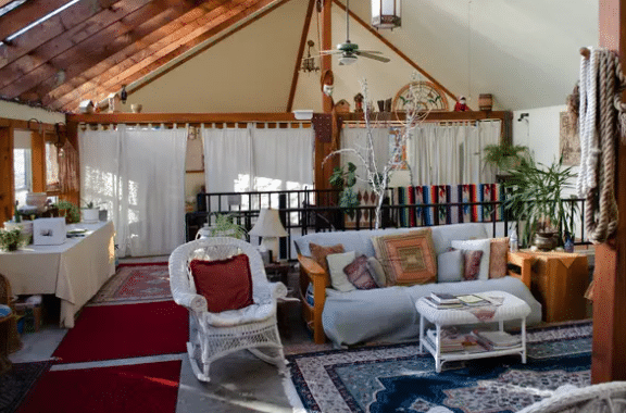 Instead, it is a luxurious and charming 11,000 square-foot residence that has a solar greenhouse, rustic woods, natural fibers, a state-of-the-art kitchen, stained glass, a new-age ambiance, and cozy home vibes with much more.