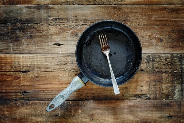 Refill the pan with water and then mix a cup full of vinegar in it. Boil it, take it off the stove and add baking soda to it. Allow it to rest until it is lukewarm, then srub the pan’s bottom with a wooden spoon until all the remnants are removed. It is an easy way to make old pans look almost brand new.