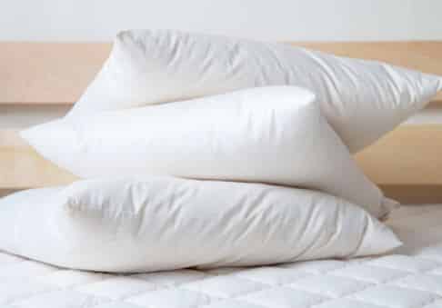 Generally, duck and goose feathers are used in pillows as they are strong and can spring back when pressurized. These feathers are sometimes mixed down so that the pillows feel softer.