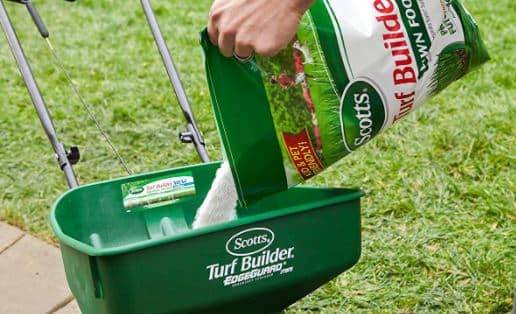 Scott’s turf builder can fertilize the grass and boost growth. The roots also benefit and develop more profoundly and more powerfully. This product’s goal is to enhance your garden. It absorbs water and nutrients better.Â
